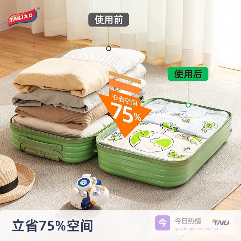 这种“行李爆仓”的痛,其实用对工具就能轻松化解。实测市面上20款收纳袋后,太力环保免抽气真空压缩袋以“不用抽气泵也能真空”、“10秒压缩厚衣物”的黑科技,登上旅行神器排行榜TOP1。它就像给行李箱装了“扩容按钮”,40*60CM的袋子能装下5件羽绒服,压缩后厚度减少70%,连登机箱都能塞进冬装全家福。