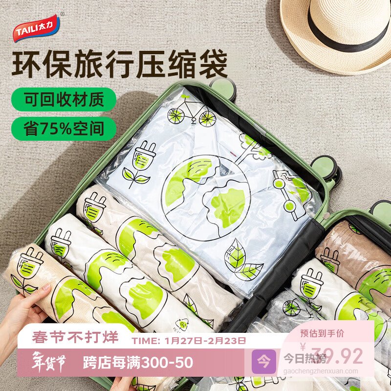 太力环保旅行收纳袋免抽气真空压缩袋行李旅行包衣服整理袋神器 【40*60CM】10个装¥