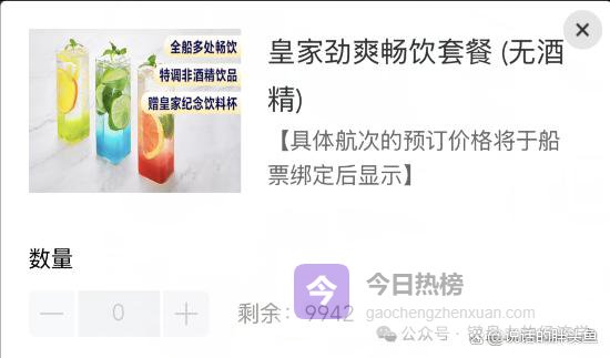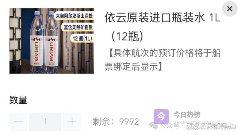 初始剩余数9999,我提前2天看的时候还剩9992,也就是说一艘最多5000人的船里,只有8个人买了水,其他人都要扛热水瓶去餐厅抢水喝。。。