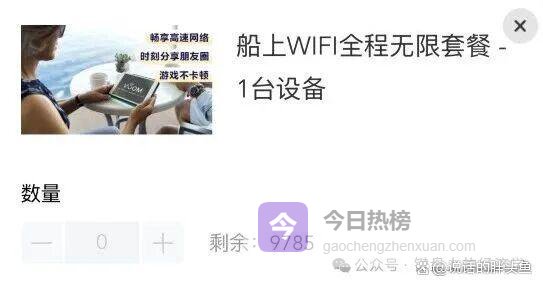 当然,还有双wifi、三wifi的套餐,我看了眼,也就售出100多套,所以这艘可载5000人的船里,总共只有500人买了wifi,其他4000人是真的没网上,宁可憋5天也要省下这笔钱。