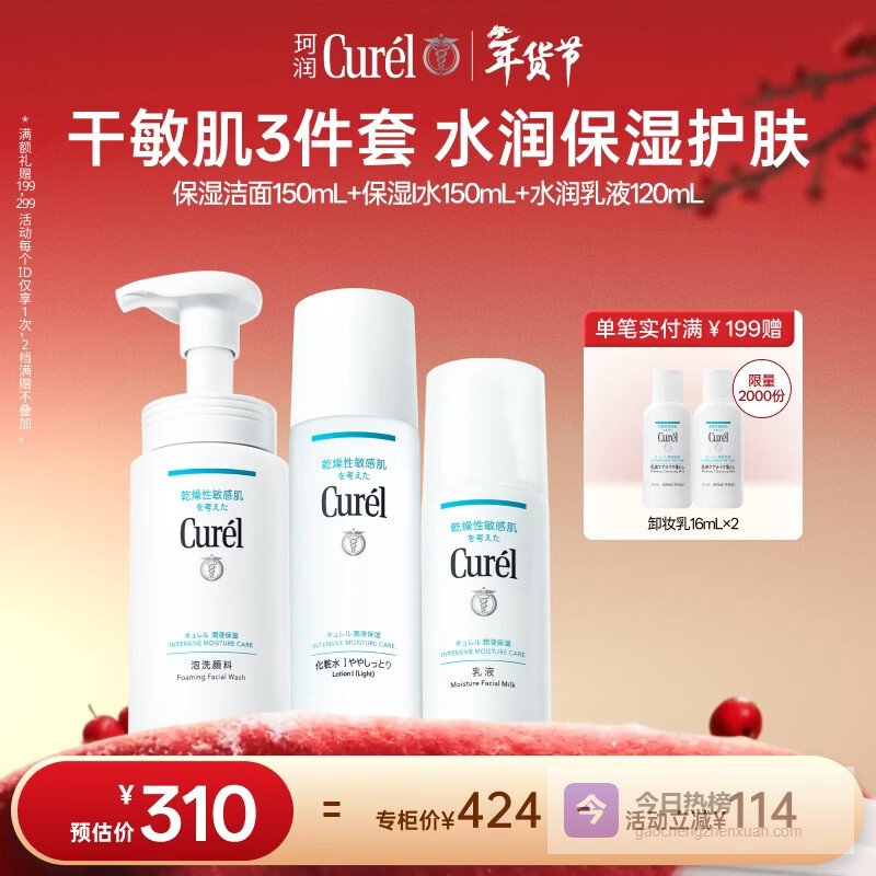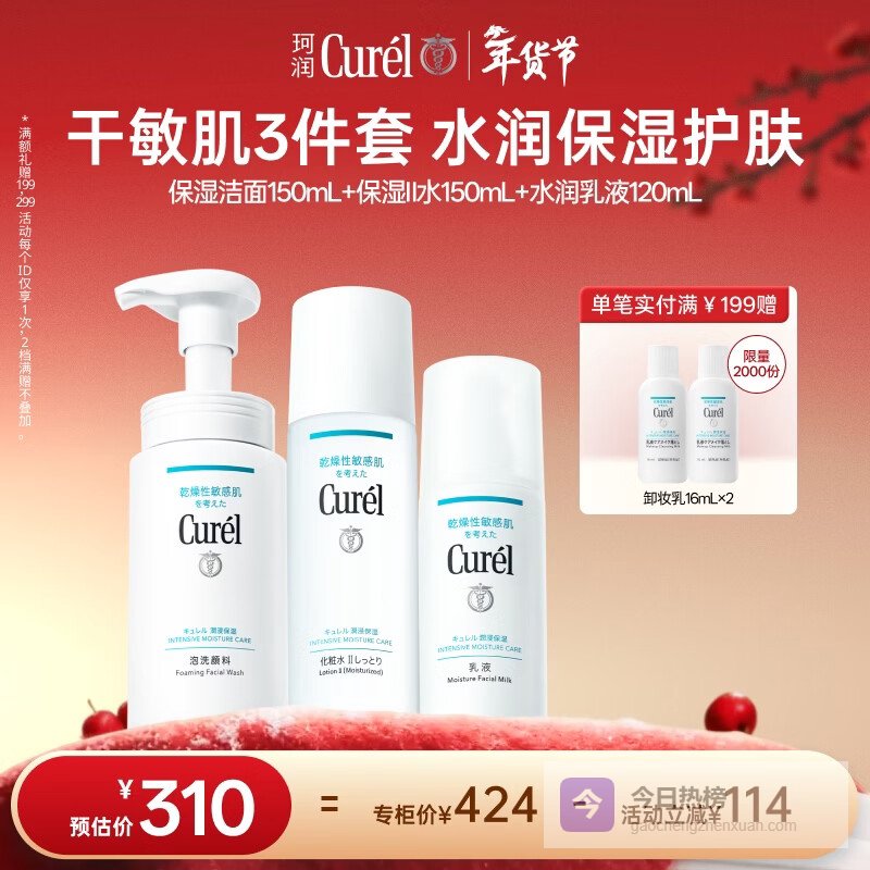 珂润(Curel)保湿3件套(洁面+1号水+乳液)补水化妆品护肤品套装敏感肌新年礼物¥
