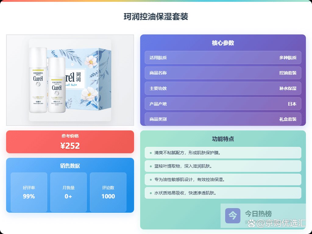 珂润保湿水系列产品确实是敏感肌的福音,但选择哪一款确实让人有点头疼。如果你是干敏皮,那珂润润浸保湿三件套或者珂润保湿型水乳套装绝对值得考虑,它们在保湿和修护肌肤屏障方面表现都很出色。想要更全面的护理,可以试试珂润保湿水乳霜套装,能给皮肤带来更深层的滋养。而对于油敏皮来说,珂润控油保湿套装能够有效调节水油平衡,让肌肤清爽不油腻,简直是夏日必备。总之,根据自己的肤质和需求来选择,肯定能找到适合你的那一款珂润保湿水。