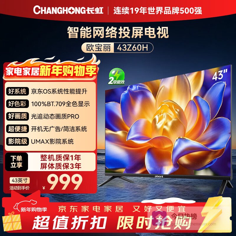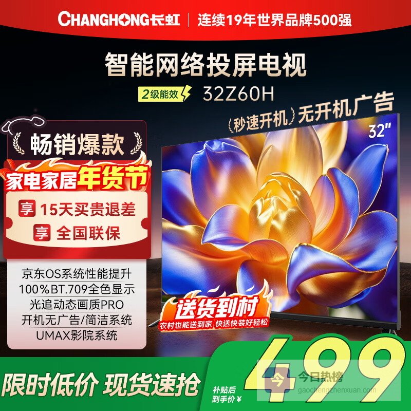 长虹经济款 长虹欧宝丽京东联名款 京东OS 32JD 01 32英寸 无开机广告 智能网络投屏电视 32Z60H ¥