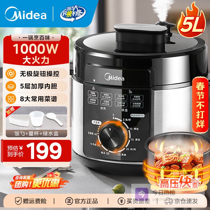 美的(Midea)电压力锅 家用高压锅电高压锅电饭煲多功能锅压力锅电饭锅高压电饭锅大容量 5L 【店长推荐】高压快煮 旋钮操作¥