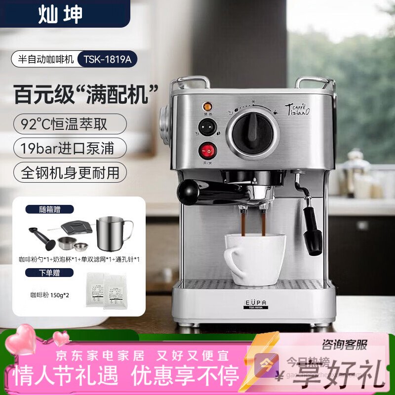 灿坤半自动咖啡机 意式浓缩咖啡机 小型便携家用厨房办公室全钢机身新年礼物¥
