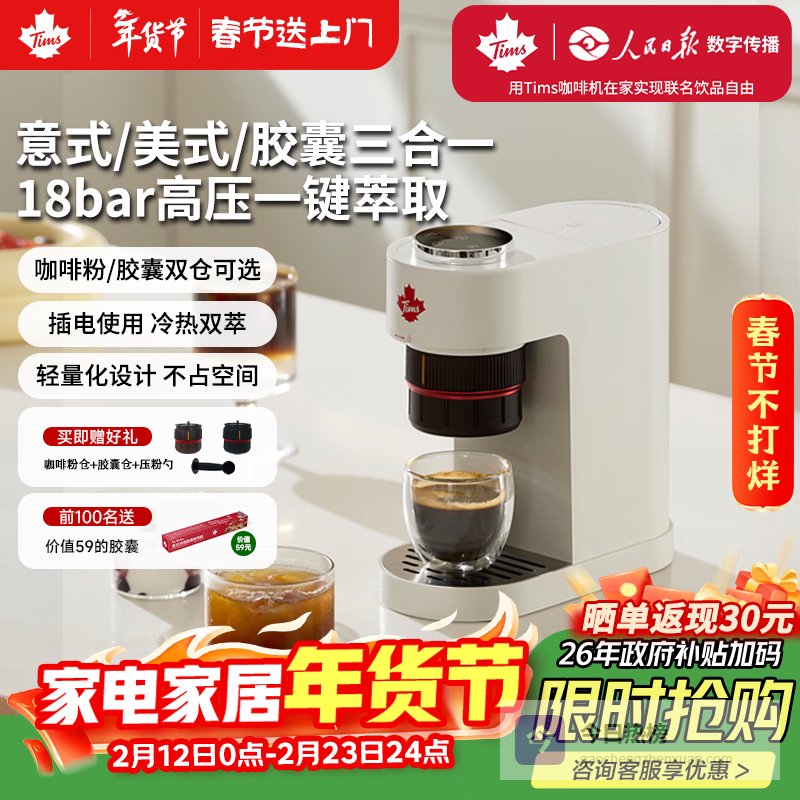 Tim Hortons天好胶囊咖啡机小型家用便携一体全半自动萃取办公室生日礼物 A2¥