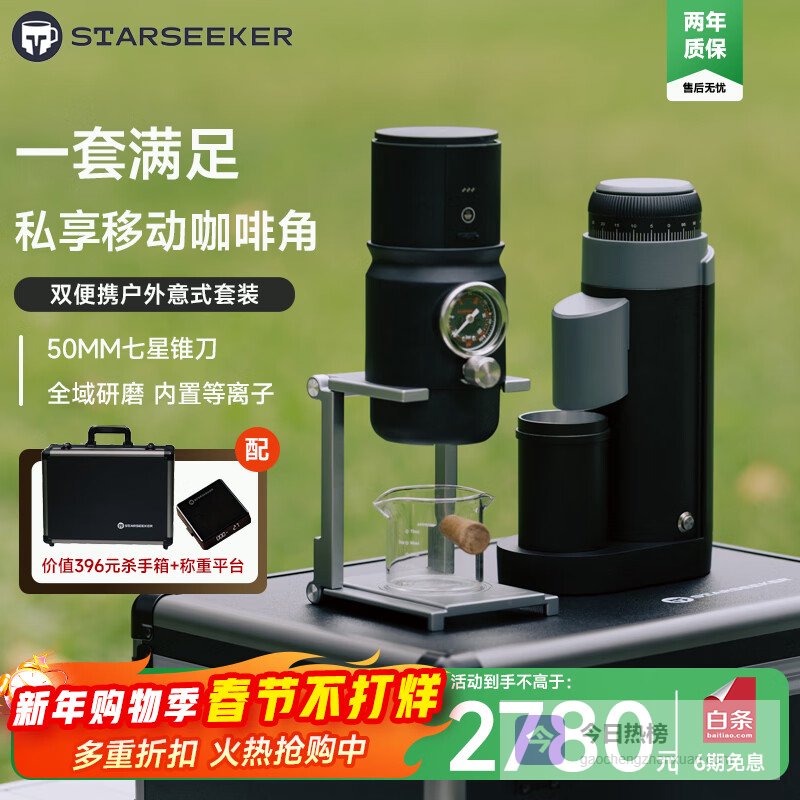 STARSEEKER探索者Super58便携式咖啡机家用小型意式浓缩半自动咖啡机可调压力58MM萃取办公室户外露营 【户外专业套装】大魔盒 黑色¥