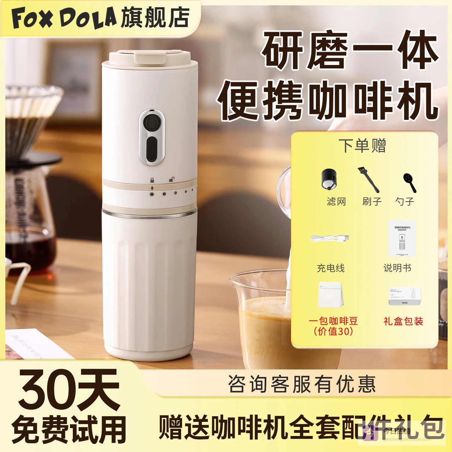 FOX DOLA【新年礼物】新款便携式咖啡机迷你小型研磨一体机家用咖啡豆杯男生女生生日礼物手冲咖啡周年礼物 米白色-咖啡机(赠3件+1包咖啡豆+彩箱)质保两年¥