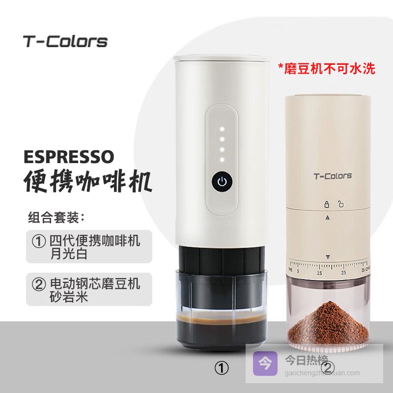 T-Colors便携户外意式咖啡机手持电动咖啡粉胶囊两用旅行充电车载 月光白+电动钢芯外调磨豆机砂岩米¥