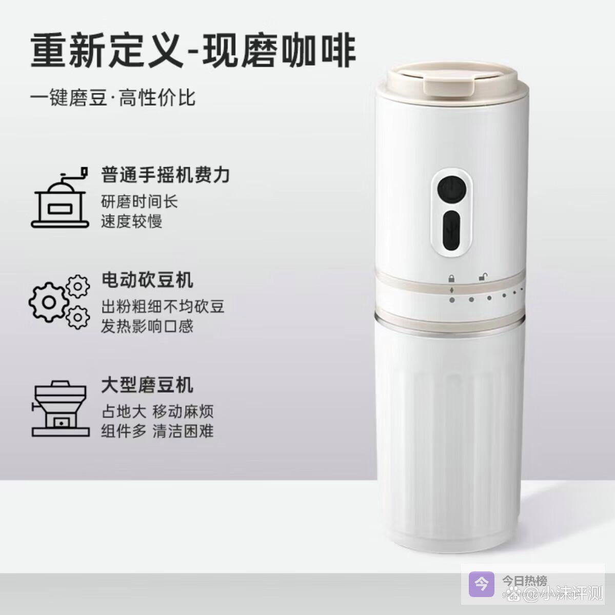 内部结构方面,精密滤网有效过滤咖啡粉末,提升咖啡口感的纯净度。带有阻力感应的磨豆仓,磨豆完成自动断电,用着安全又放心。整体一体化设计,结构紧凑,清洗和收纳都方便,基本满足日常便携需求。