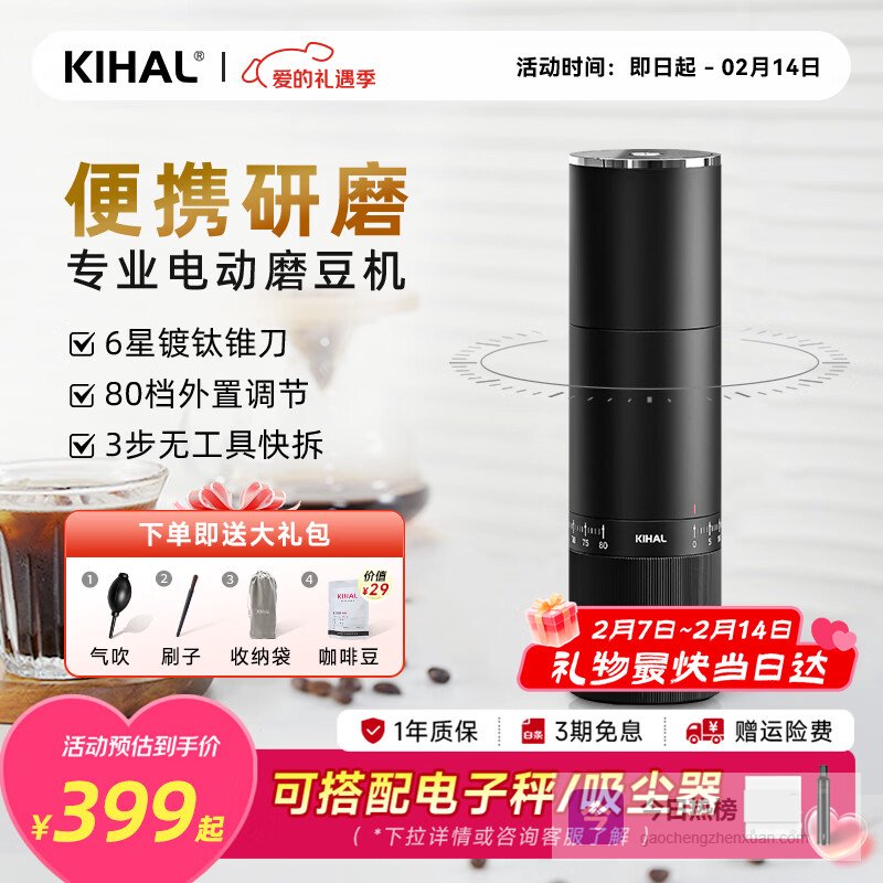 KIHAL起好万花筒MD02便携式电动磨豆机咖啡豆研磨机家用咖啡机磨粉器 MD02石墨黑 KH-MD02¥