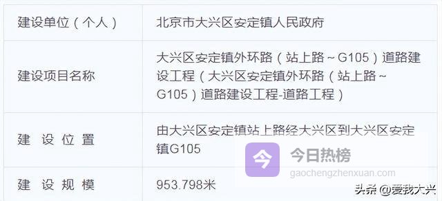 建设位置:由大兴区安定镇站上路经大兴区到大兴区安定镇G105