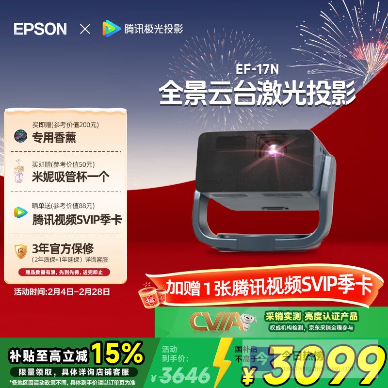 【京东自营】爱普生EF-17N家用投影仪3LCD智能激光云台投影机¥