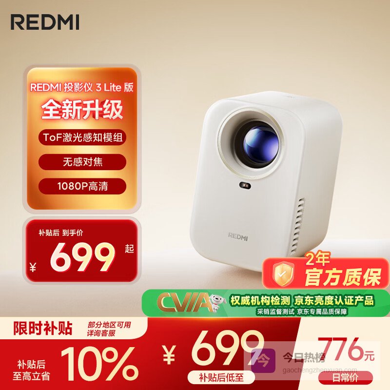 【京东自营】小米投影仪Redmi3Lite版投影仪家用智能家庭影院无感对焦无感校正1080P物理分辨¥