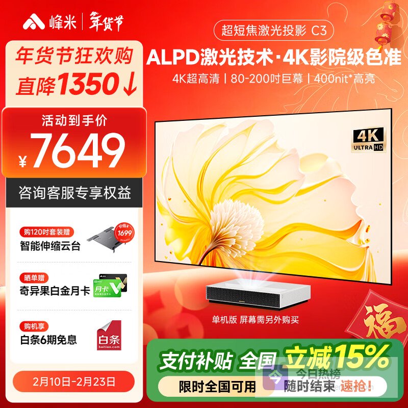 【京东自营】峰米4K超短焦激光投影仪C3家用投影机家庭影院办公¥
