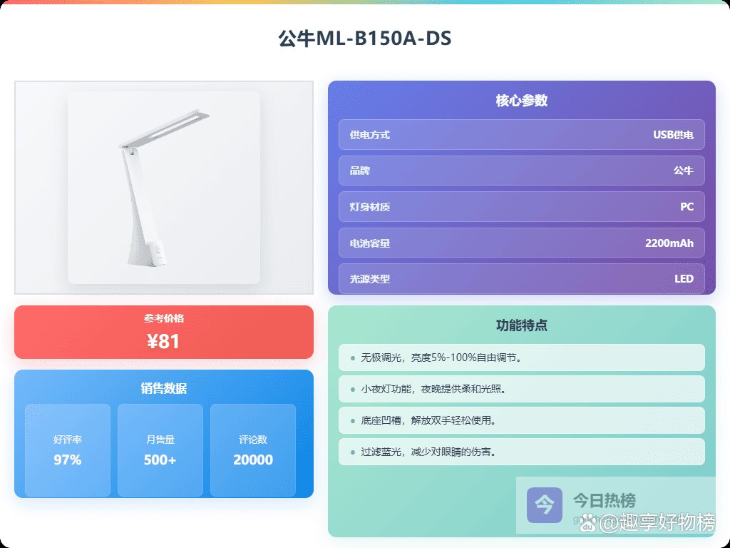 写在最后:选择公牛折叠台灯,说白了就是选择一种更健康、更便捷的生活方式。希望通过这份选购指南,能帮助大家找到最适合自己的那盏灯,让学习和工作都能更加轻松愉快!