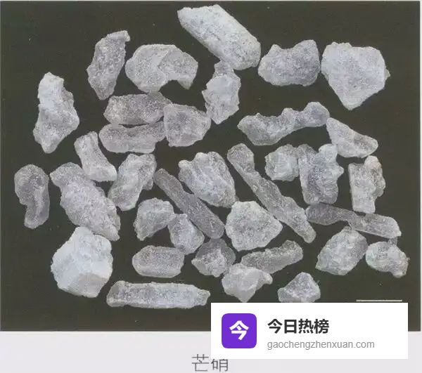 2.1 ► 来源与别名芒硝并非天然宝石,而是硫酸盐类矿物芒硝族经加工精制后的结晶体,主含含水硫酸钠(Na₂SO₄·10H₂O)。