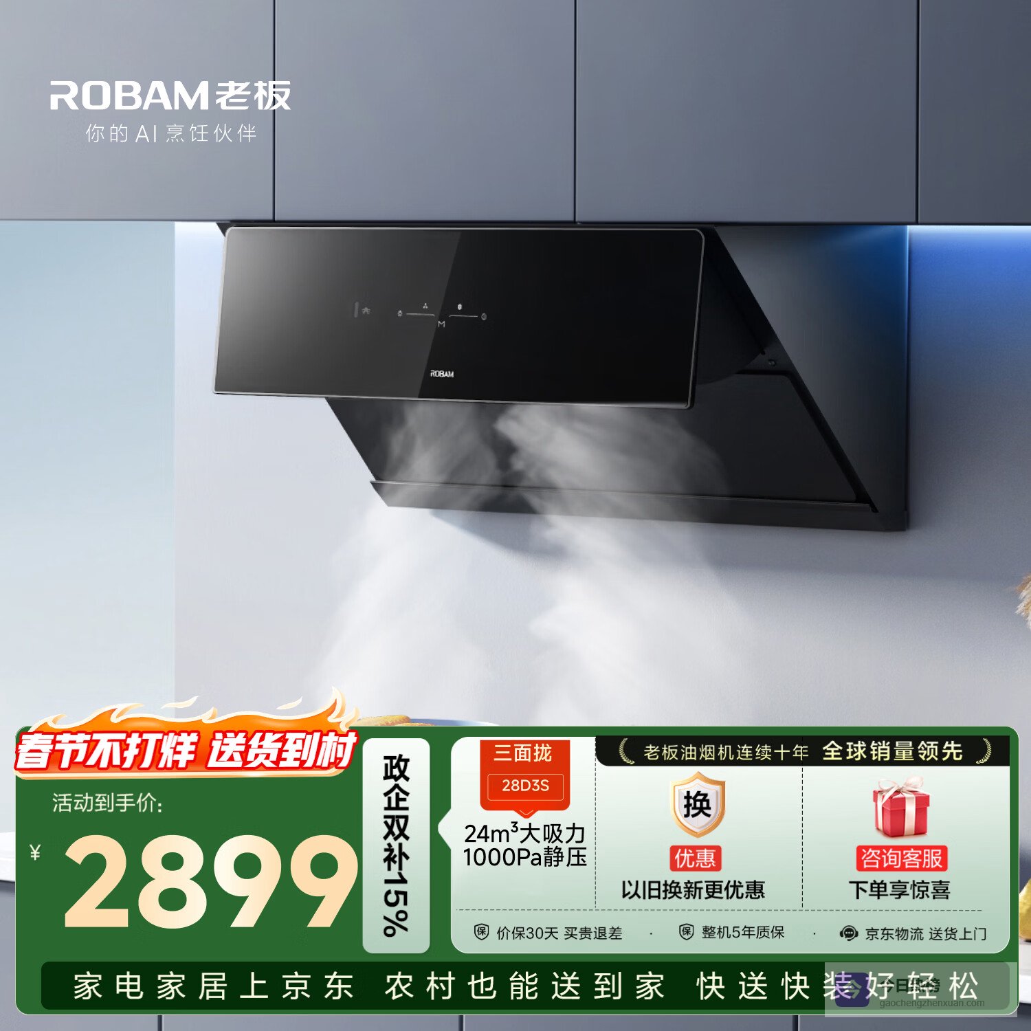 老板【三面拢烟侧吸】24风量油烟机抽烟机家用厨房好物以旧换新一级能效28D3S可配灶国家补贴¥