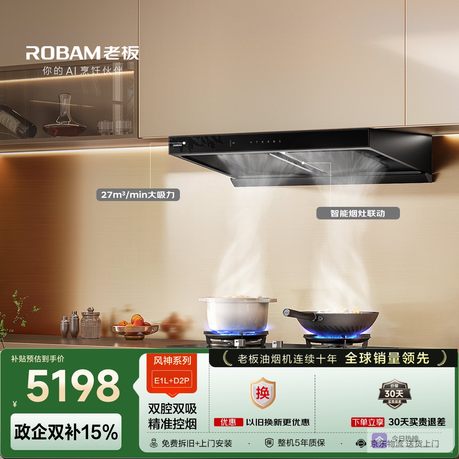 老板【双子星E1L】抽吸排油烟机65D5-E1L双腔家用27大吸力烟灶套装联动防干烧灶具E1L+D2P ¥