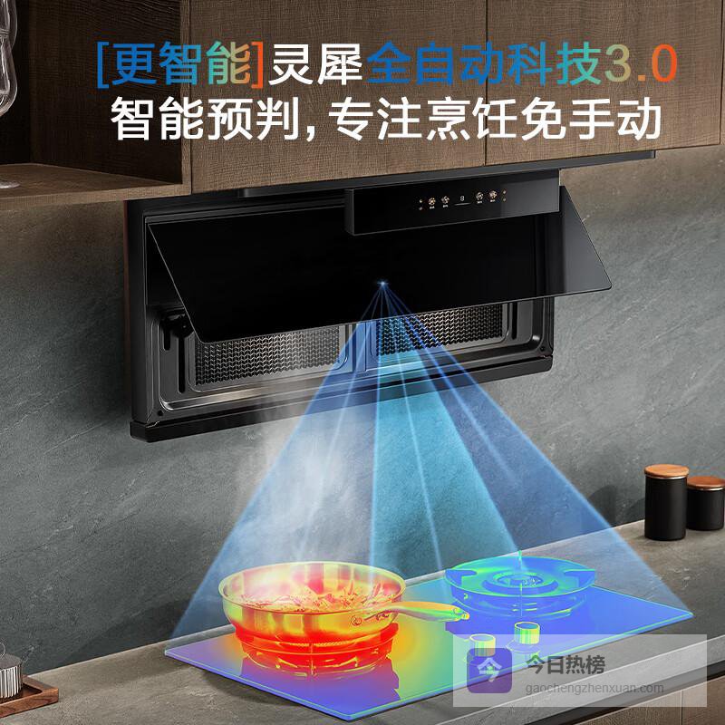 ▶ 智能调节:搭载AI智能判别和油烟感应功能,油烟变多会自动调节风量,风力更智能,不用担心油烟跑偏,也不用手动调节。
