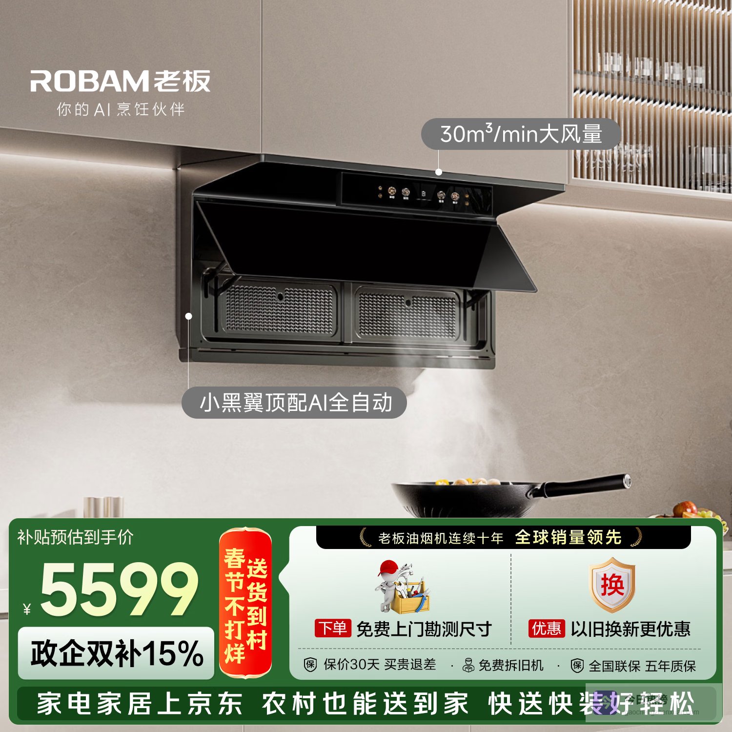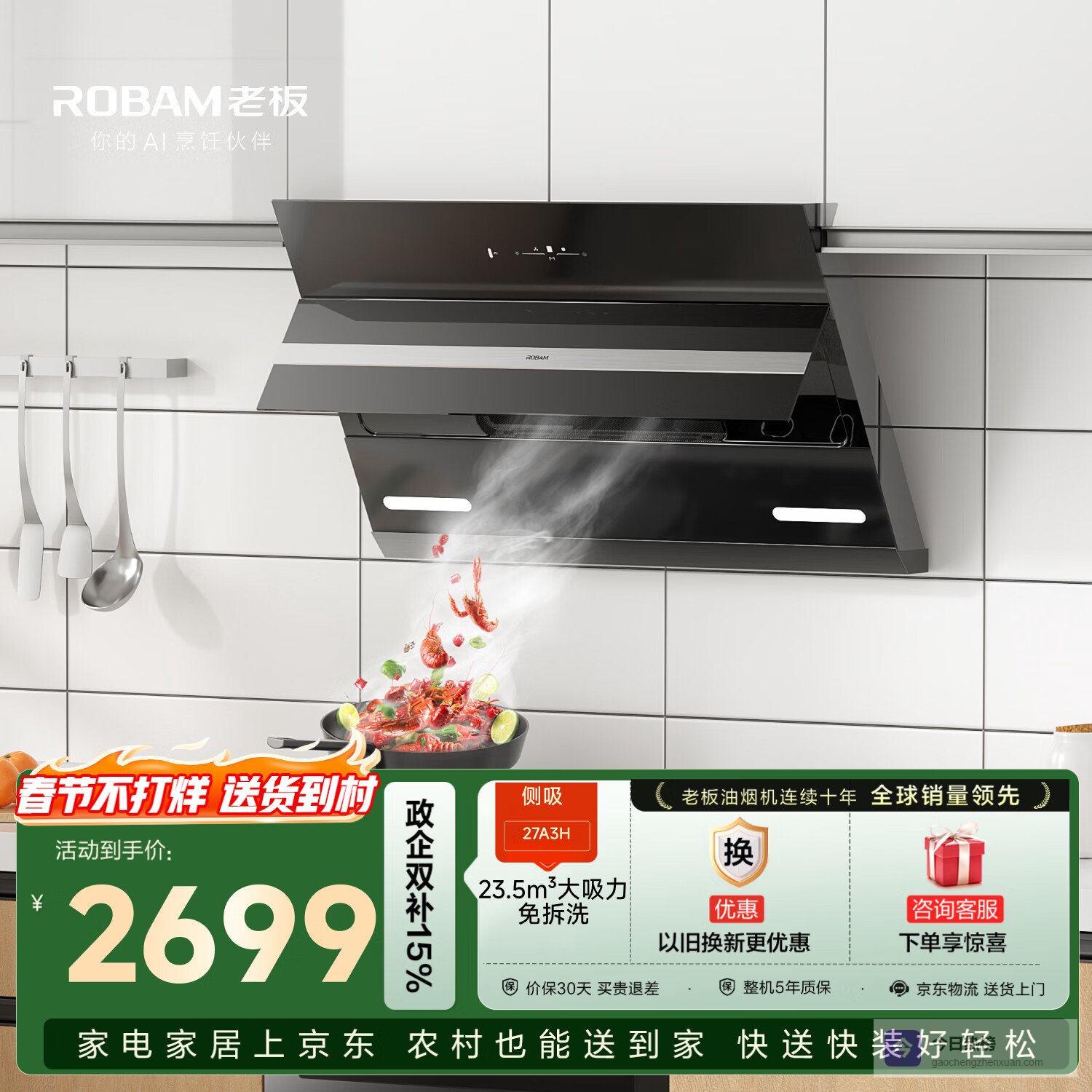 老板(Robam)【小黑翼30风量】27A31-D2P超薄抽吸排油烟机30大吸力顶侧双吸烟灶联动国家补贴+灶具59B8D天然气¥