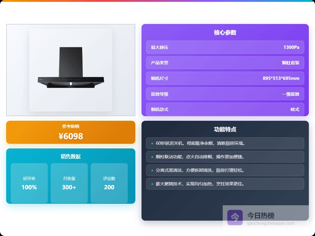 ▶ 强劲排风:这款油烟机每分钟能排出16立方米的油烟,炒菜时油烟走得还挺快,厨房空气更清新,让你做饭不用担心油烟呛人。