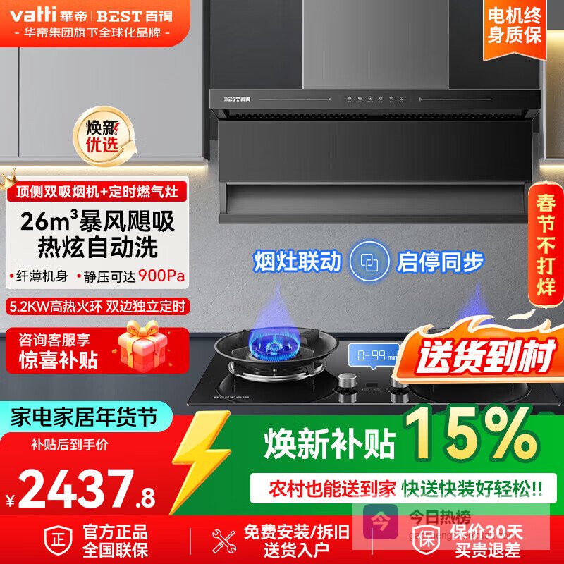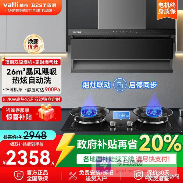百得(BEST)华帝出品顶侧双吸抽油烟机家用变频烟机灶具套装26立方大吸力挥手智控吸油烟机热水器消毒柜三件套 【顶配套装】E652+天然气5.2KW灶QE701¥