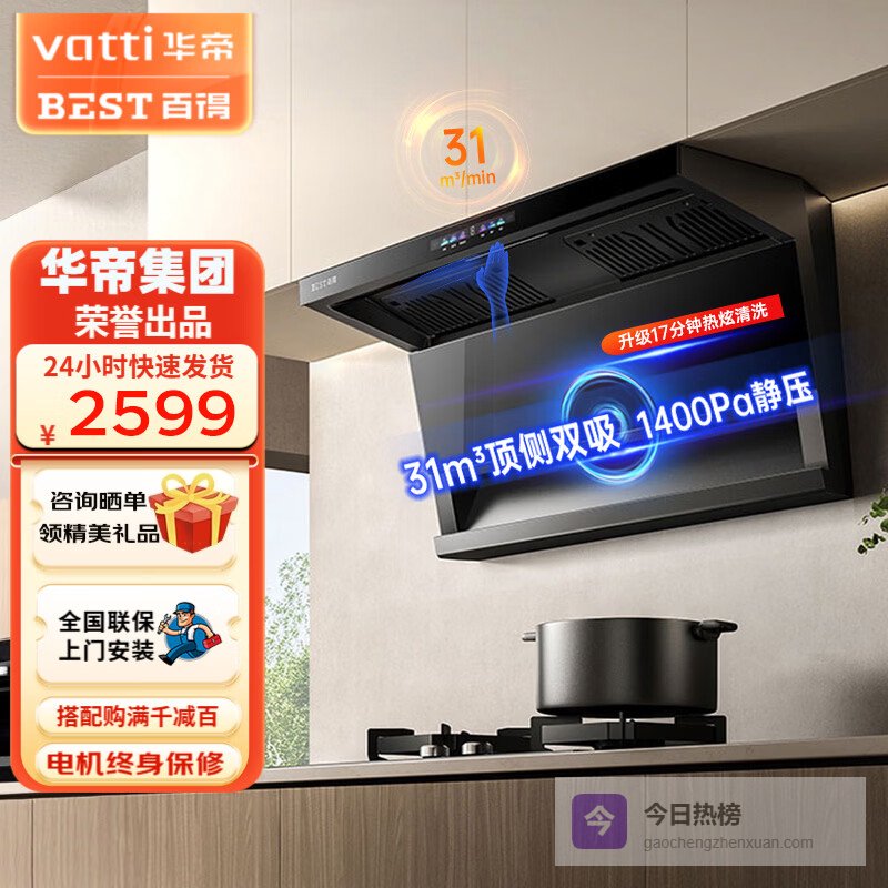 百得(BEST)华帝出品顶侧双吸抽油烟机31立方大吸力 挥手智控 智能变频巡航家用脱排吸油烟机一键自清洗ED802 31立方单油烟机¥