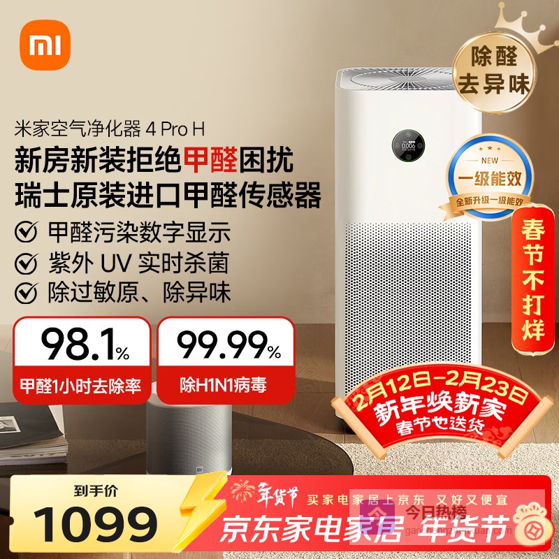 【京东自营】米家小米空气净化器4ProH家用除甲醛除菌甲醛传感器AC-M23-SC¥