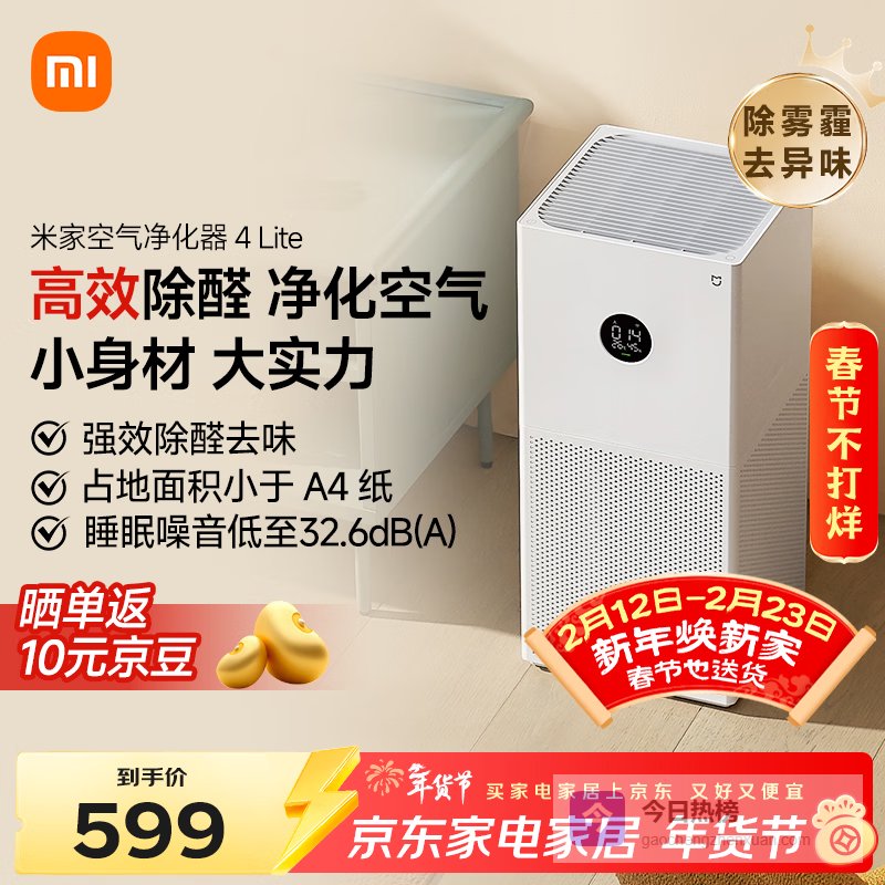 【京东自营】米家小米空气净化器4lite除甲醛除菌除异味空气伴侣除PM2.5AC-M17-SC¥