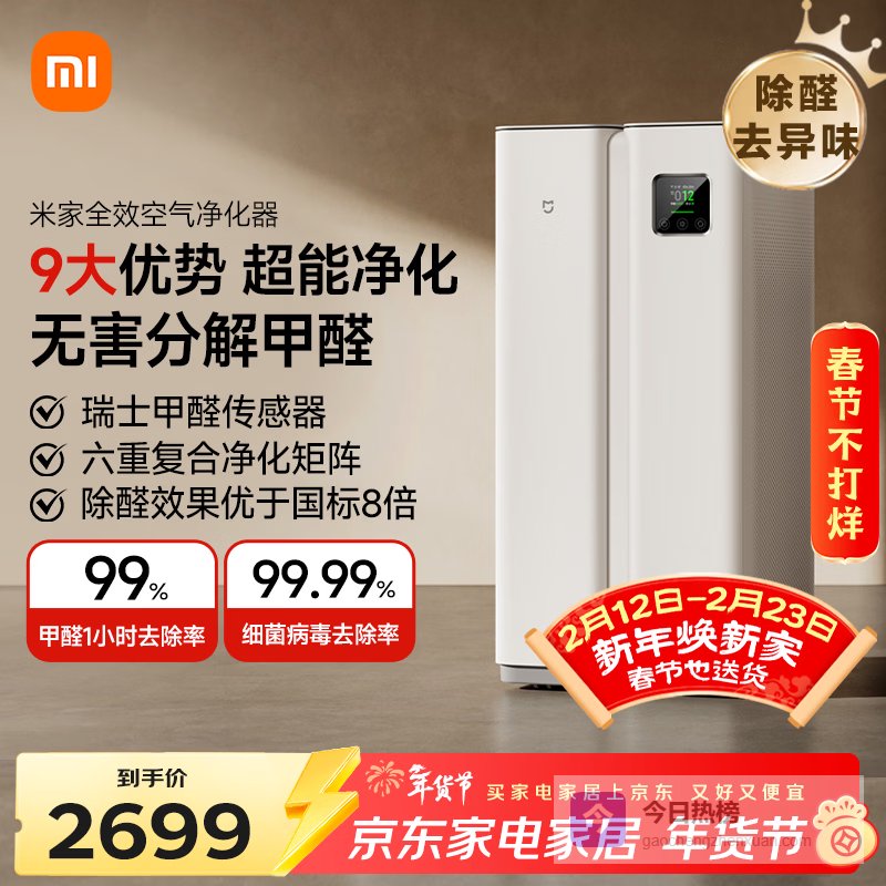 【京东自营】米家小米全效空气净化器分解式除醛除菌雾霾异味智能数显¥