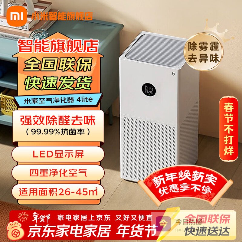 【品牌直营】米家小米空气净化器4lite家用除甲醛除异味PM2.5轻音设计LED显示屏智能控制小巧不¥