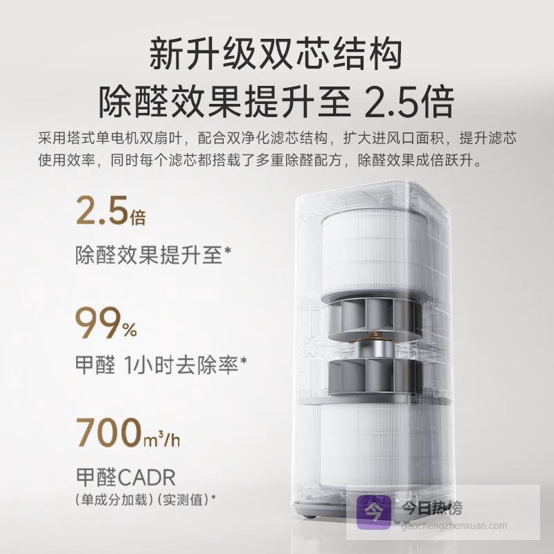 1️⃣先进双滤芯设计:双芯结构提升净化效率,让居室空气更加清新健康,彻底过滤各类室内污染物。无论灰尘、花粉还是甲醛,都能快速去除,提升家居品质。