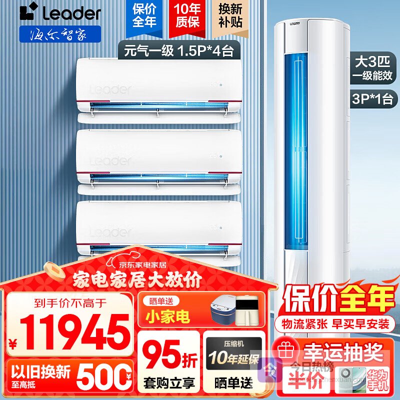 【品牌直营】海尔净省电Plus空调套装双排挂机立式柜三室一厅节能变频新一级能效冷暖家用三室二厅满配版¥