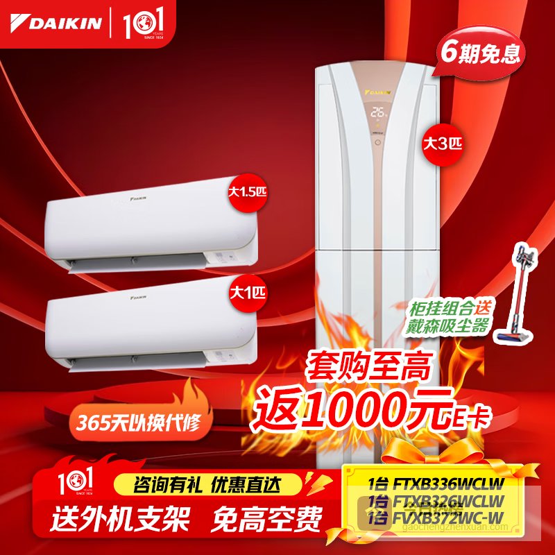 推荐入手:大金变频空调3匹客厅立柜式套装