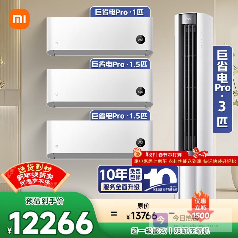 推荐入手:小米米家巨省电Pro空调套装3匹三室一厅