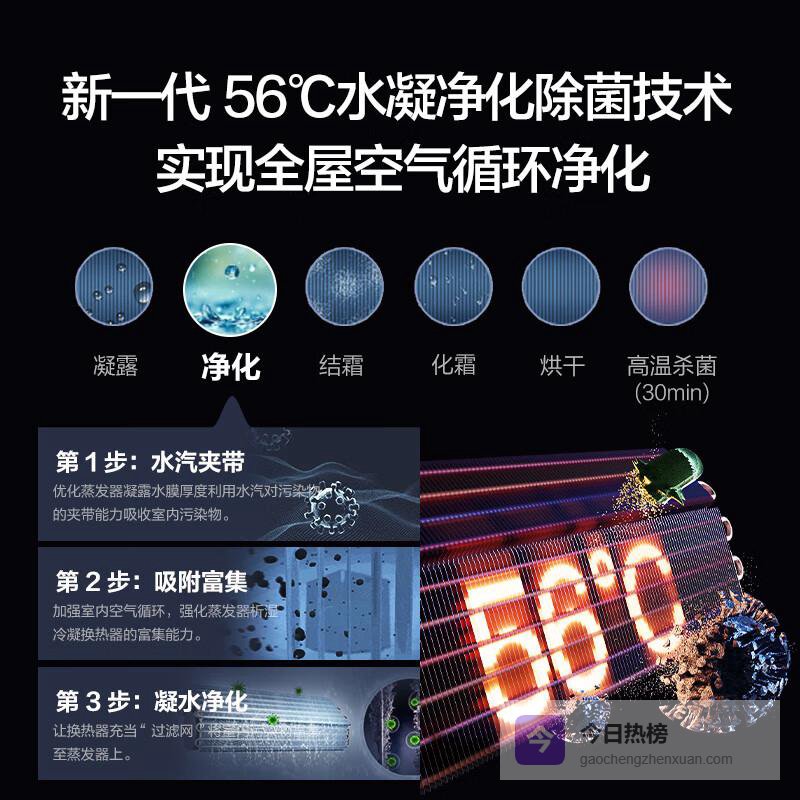4️⃣深度清洁系统:升级的智清洁功能利用56℃蒸汽进行深层清洁,确保出风通道始终干净,给入住者带来安心的健康保障。