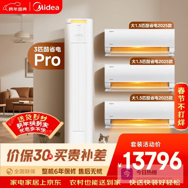 推荐入手:美的酷省电变频空调套装 1.5匹挂机+3匹柜机
