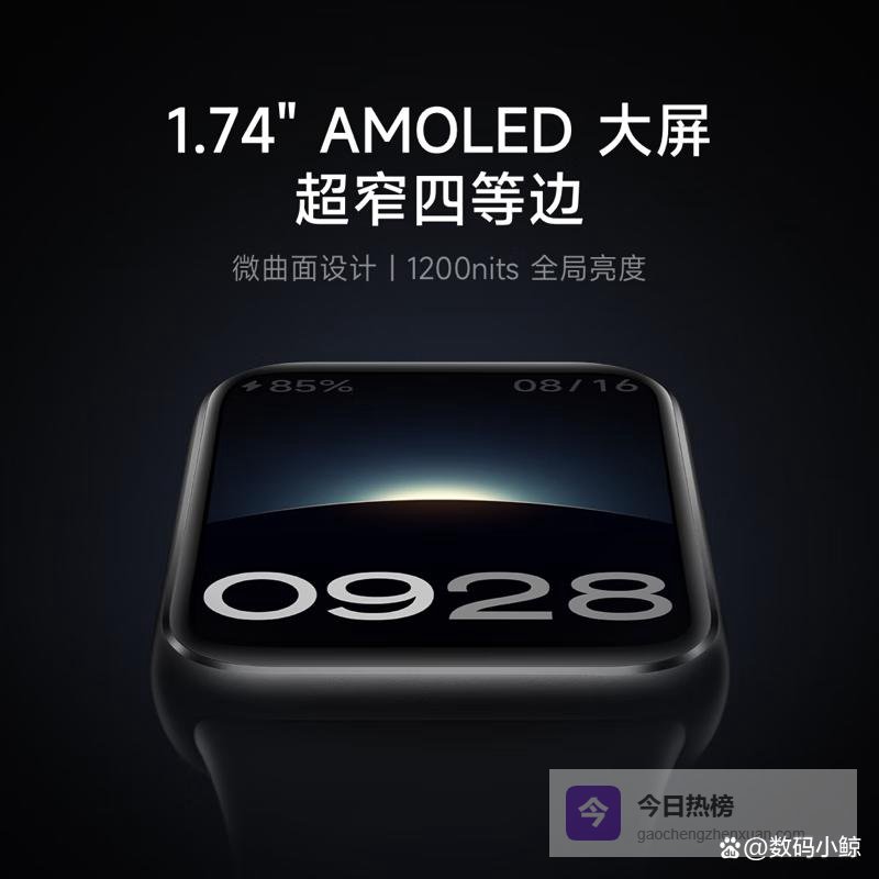 无论是在光线明亮的阳光下还是昏暗的环境中,1.74英寸AMOLED大屏都能清晰呈现信息。高达1200nits全局亮度保证了不同场景下的卓越表现,超窄四等边设计更是提升了视觉享受,带来极致的操作体验。这种屏幕将技术美学与功能性完美融合。