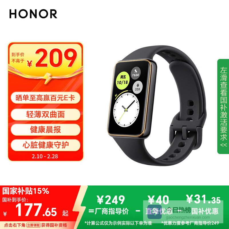 【京东自营】荣耀手环10标准版【国家补贴】曜石黑智能手环轻薄双曲面健康晨报心率血氧监测运动手环送男友¥