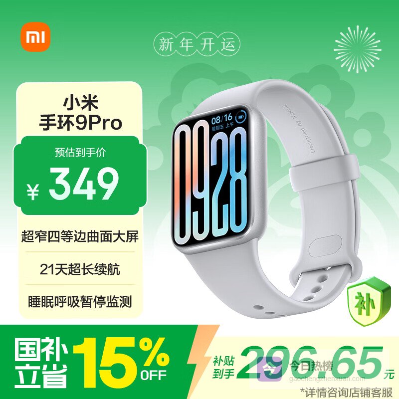 【京东自营】小米手环9Pro银色智能手环高精度运动健康睡眠呼吸暂停监测心率血氧监测运动手环送男友送女¥