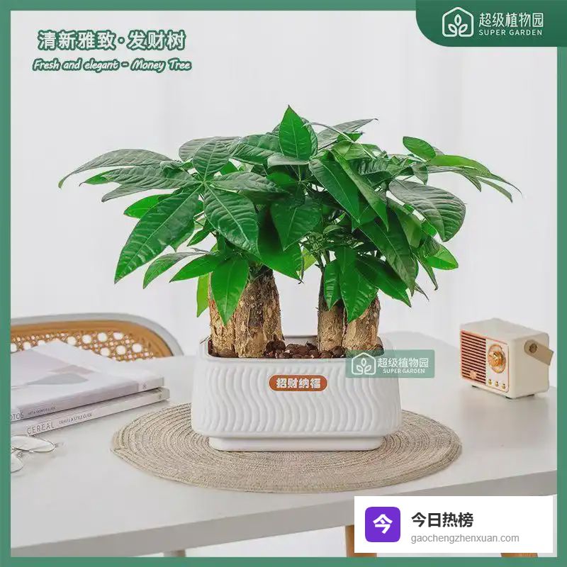三、六杆发财树:招财纳福的职场必备在中国传统文化中,发财树一直被视为招财进宝的象征。这款六杆发财树更是将美好寓意与实用功能完美结合,成为众多商务人士办公室的首选绿植。