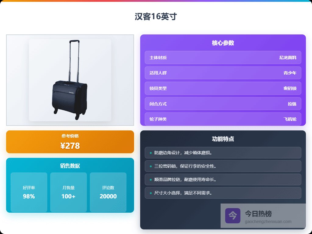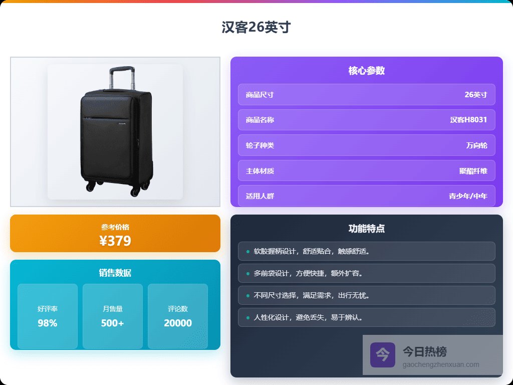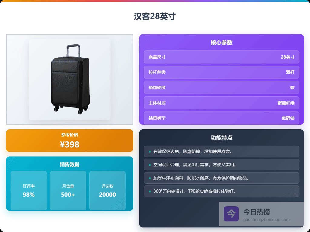汉客万向轮拉杆箱好用吗,精选推荐及购买指南1、汉客万向轮行李箱