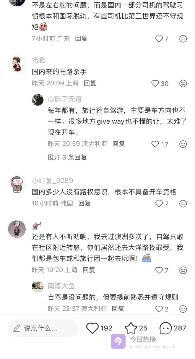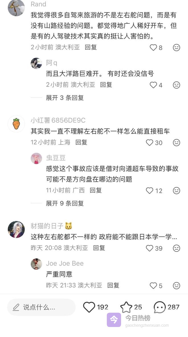 对于刚来澳洲不久、还没完全熟悉路况的人来说,建议先在市区适应一段时间,再考虑自驾大洋路。真的想去,可以选择包车或跟团。
