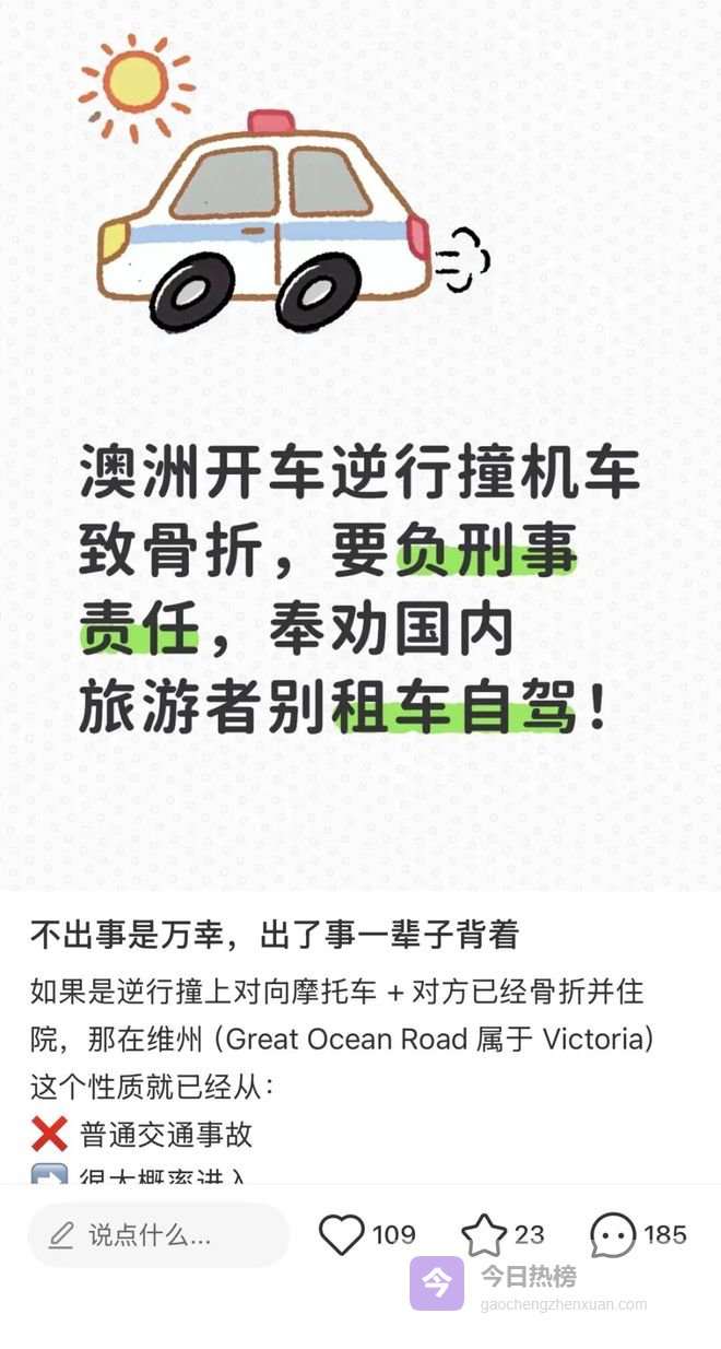 但不管责任最终如何认定,一点很清楚——逆行在澳洲属于极其严重的交通违法行为,一旦造成人员重伤甚至死亡,法律后果绝不会轻。