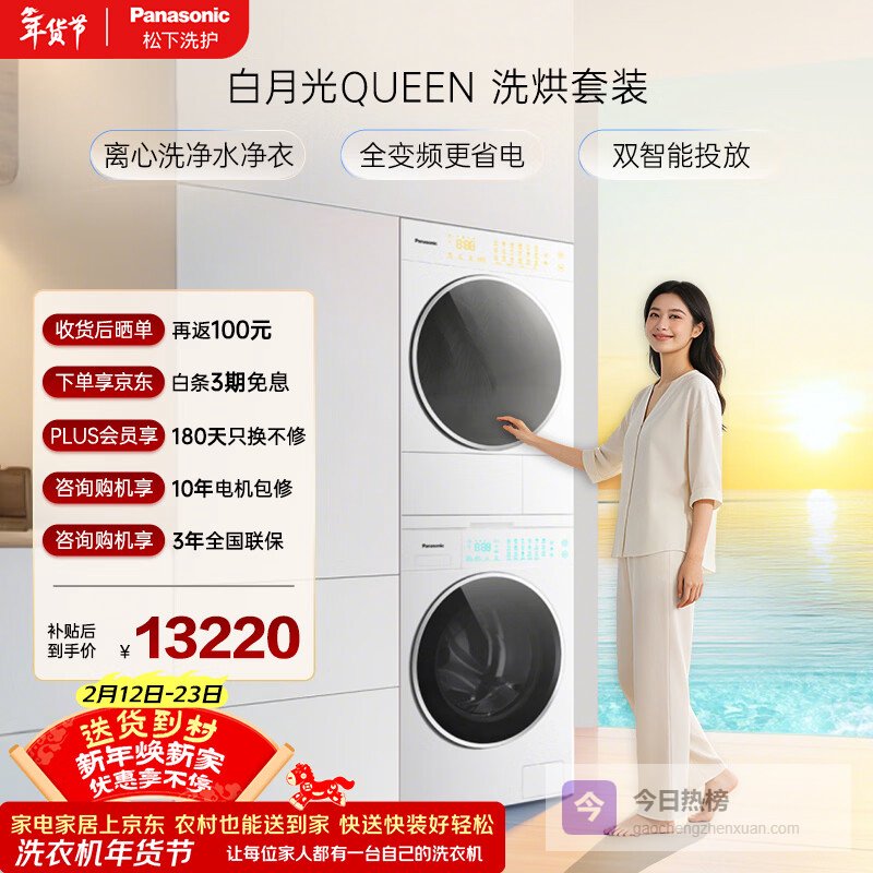 第九款:松下洗烘套装 10kg滚筒+热泵机 白月光Queen