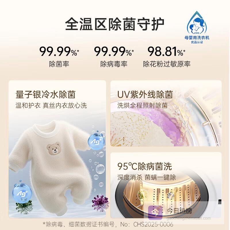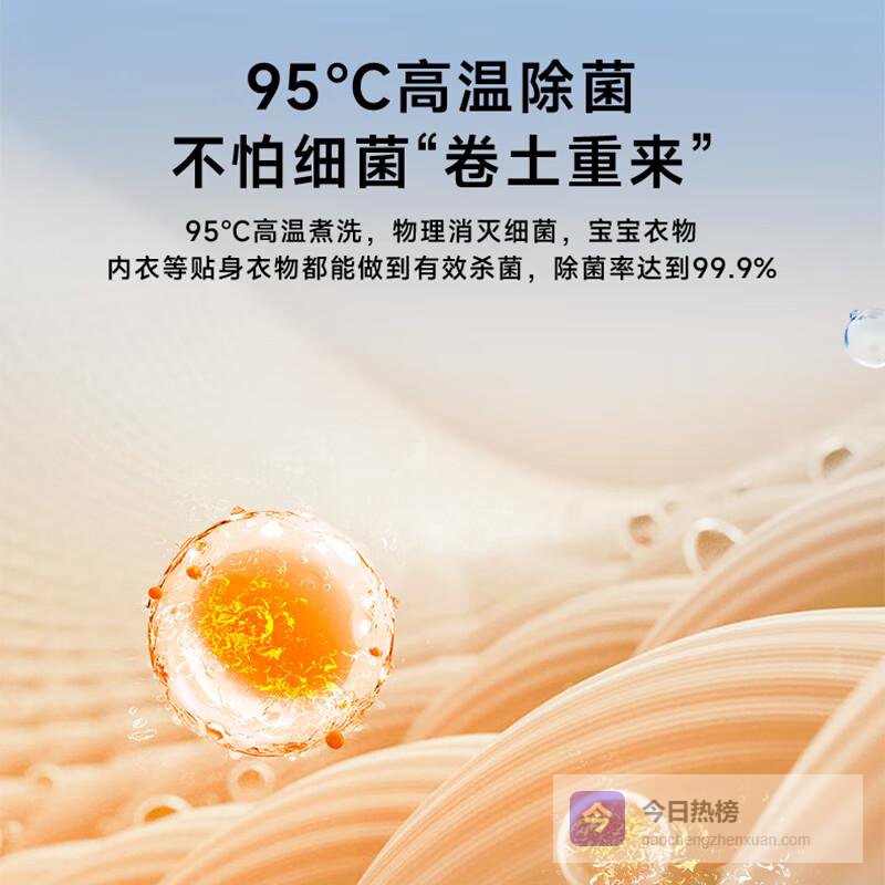 高温除菌效果:利用95℃高温洗涤,有效杀灭细菌,特别适合家庭成员多、有小宝宝的用户,保障每一件衣物的健康。