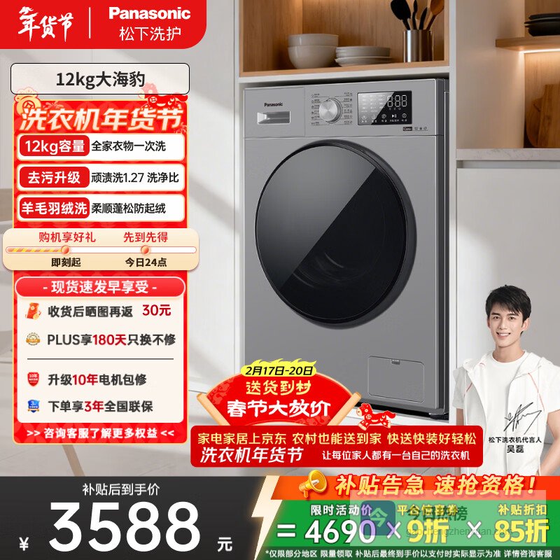 【京东自营】松下大海豹滚筒洗衣机12KG大容量专属顽渍洗直驱电机XQG120-80N1¥