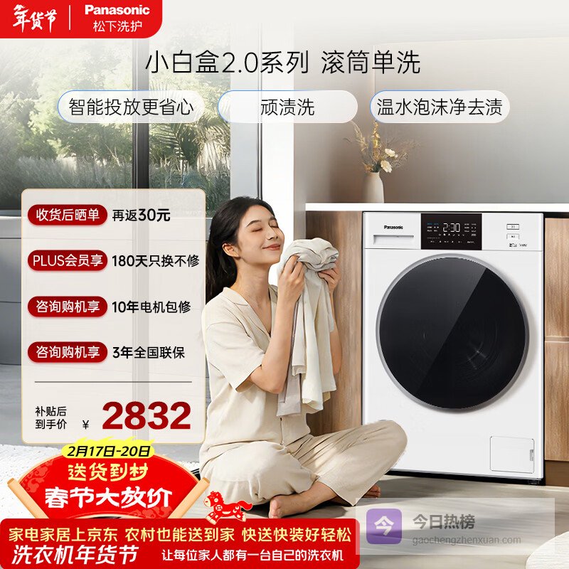 第二款:松下小白盒2.0滚筒洗衣机10公斤