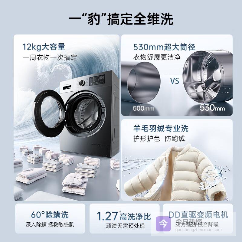 12KG超大容量:专为大家庭设计,一次性应对更多衣物清洗,节省宝贵的时间与资源,让洗衣变得高效而轻松。